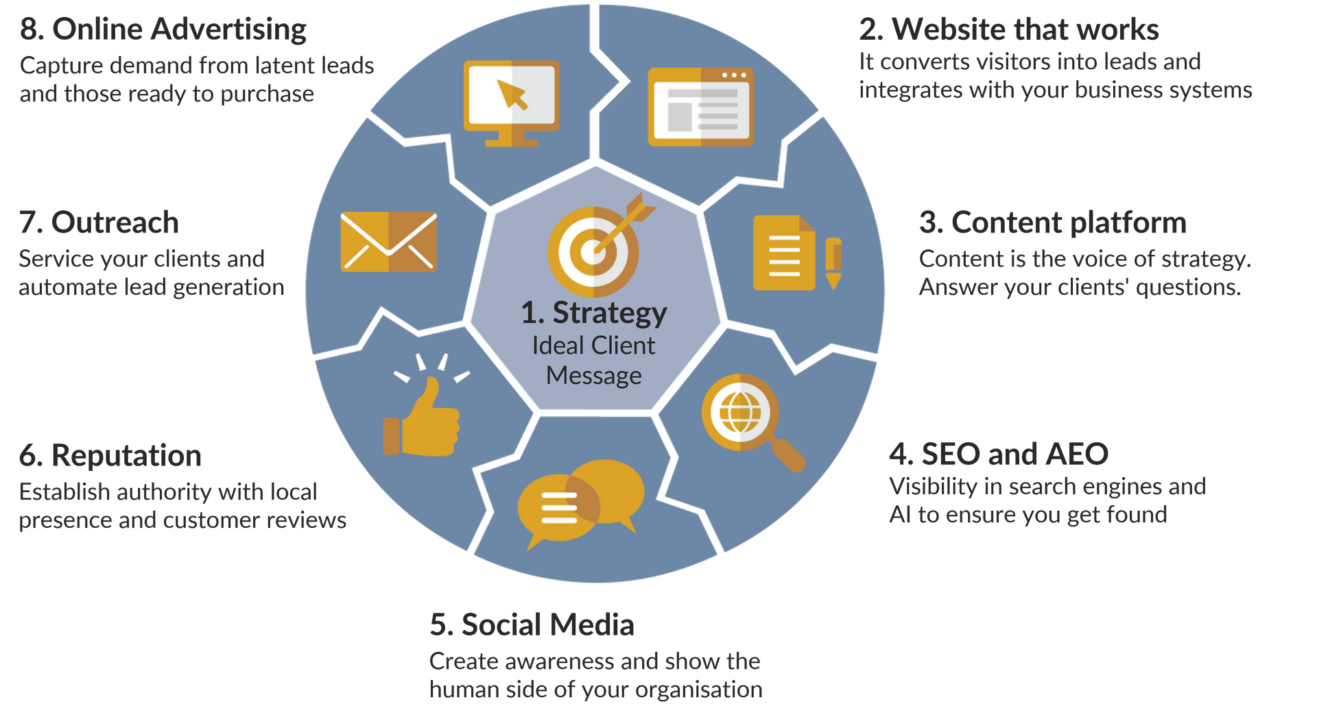 This article will show you how to build a digital marketing system that actually works: a 360-degree approach where every element works together. It creates efficiency and reduces costs, and it generates leads and converts them into clients.